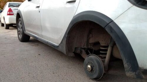 Durante la madrugada del sábado, un delincuente se llevó una rueda completa de un automóvil estacionado en la vía pública.