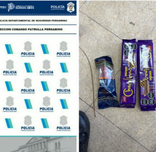 Ya con la presencia de los efectivos se procedió a la aprehensión del individuo y al secuestro de los productos ocultos entre sus pertenencias: un salame picado fino y dos paquetes de galletitas Chocolinas.