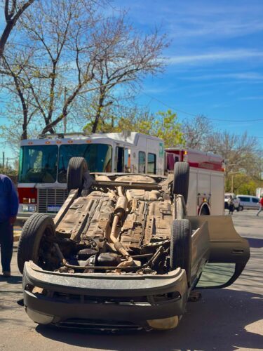 Allí en el lugar, y por cuestiones que se desconocen, un vehículo Chevrolet Corsa aparentemente rozó a un automóvil Fiat Cronos que se encontraba estacionado y terminó volcando.